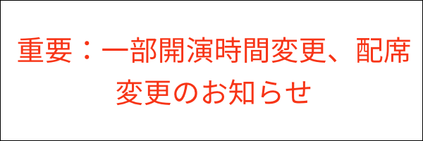 | 受付開始、客席開場、ロビー開場は、開演の1時間前となります。 |